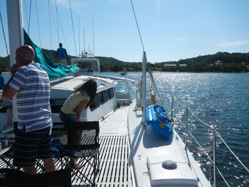 Okay now that that’s out of the way. I’ll begin with my travels. While on Roatan I met a group of Texans one drunken night who were staying in a condo resort on the island, and had themselves a sailing trip planned. One thing led to another, and next thing I knew I was tagging along with them. It was quite an epic diversion and I can’t thank them enough. We sailed with the well known Captain Dave on his Catamaran (http://www.sailinginroatan.com), first going to the beautiful islands known as Cayos Cochinos. Along the way he told us that his friend had, in those waters, found a suitcase full of money floating around (something along the lines of $500,000). Apparently it’s more troublesome to be caught with loads of unaccounted for money than to be caught with the drugs. Once at Cayos Cuchinos, we first did some snorkeling off the boat, followed by lunch on a local island (one of 15). We had somewhat of a buffet that consisted of locally caught fish (about the only possibility of income, other than the occasional tourists like us) along with rice, plantains, coconut bread and some fresca. Following our time on the island (small enough to circle on foot in about 5 minutes), we loaded ourselves back on the boat and headed for Utila, which involved much more lounging and boozing.