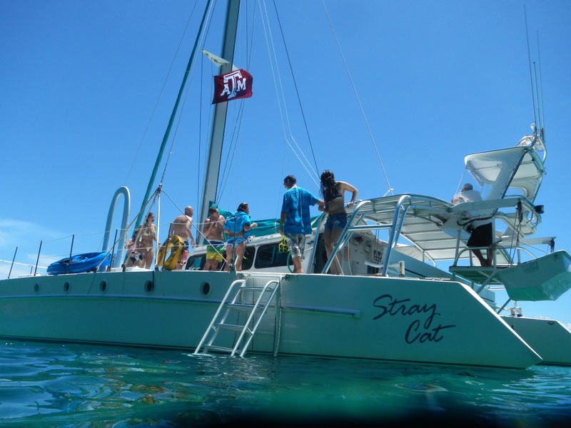 We went on to check-in to our rooms and then hit the bar, drank adequately and passed out for the night. The next morning brought us back underway headed for Roatan. This time, we were joined by a group of dolphins that swam alongside the boat for about 10 minutes. More flying fish, rum punches and a sit down at the helm with the captain and we were eventually back in Roatan territory. We snorkeled, did a drive-by dolphin feeding show at a local resort, planned to snorkel again only to rush out from the dense population of jelly fish, then actually did get to snorkel again after changing locations, and finally docked the boat back in West End. The trip was over, and it was a great time. Thanks to Captain Dave, his crew and the Texans!